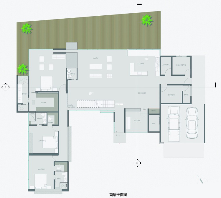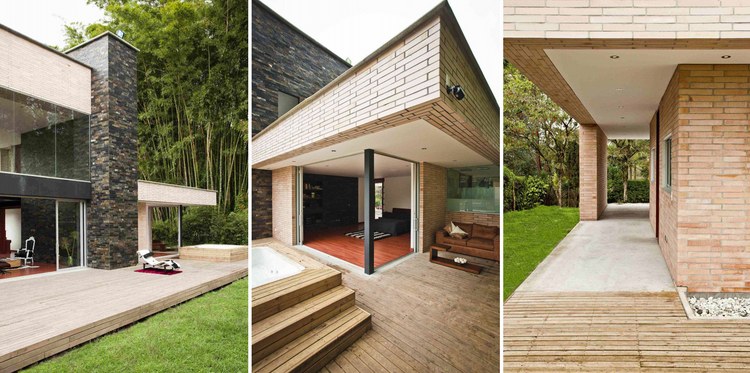 別墅設計,Olaya別墅(Olaya House)Olaya別墅位于哥倫比亞Medellin市中心大概45分鐘的車程,房屋的首層采用統一樣式的磚塊鋪筑而成,但各功能分區布局規整、明確,包括服務區、活動區和私人區。服務區域包括車庫、傭人房、洗衣房和貯藏室。活動區內設有一個巨大的廚房并與用餐區和主客廳相對,通過一道甲板式通道便可來到院落。私人區有三個我是,每一個房間都帶有獨立衛生間、浴室和更衣室。活動區與私人區被一道巨大的黑色磚墻所隔開,不論從室內還是室外都可以看到這道墻,同時墻體也是房屋主結構之一,墻體內部設有一個公共于是和兩個獨立的煙囪,分別服務于主臥和主客廳的通風。經過位于一層服務區的風格化樓梯便可以來到二層:這里簡單舒適,分為兩個寬敞的區域,一個是書房一個是主臥,另外還設有兩個巨大的露臺陽臺,可以從這里欣賞外面的風景。值得一提的是,露臺與房屋由一座小橋連接。